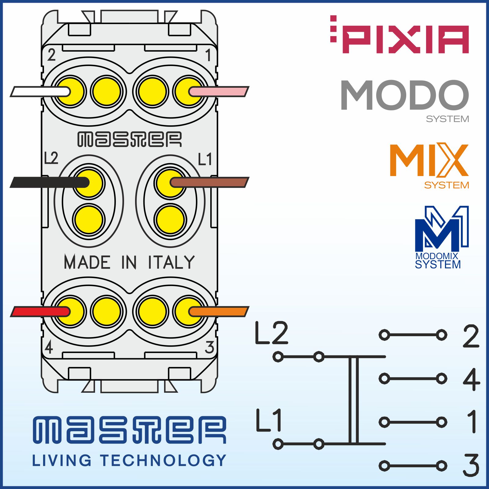 Commutatore 2P 10AX (6 Morsetti) 10AX 250V~, MODO STEEL
