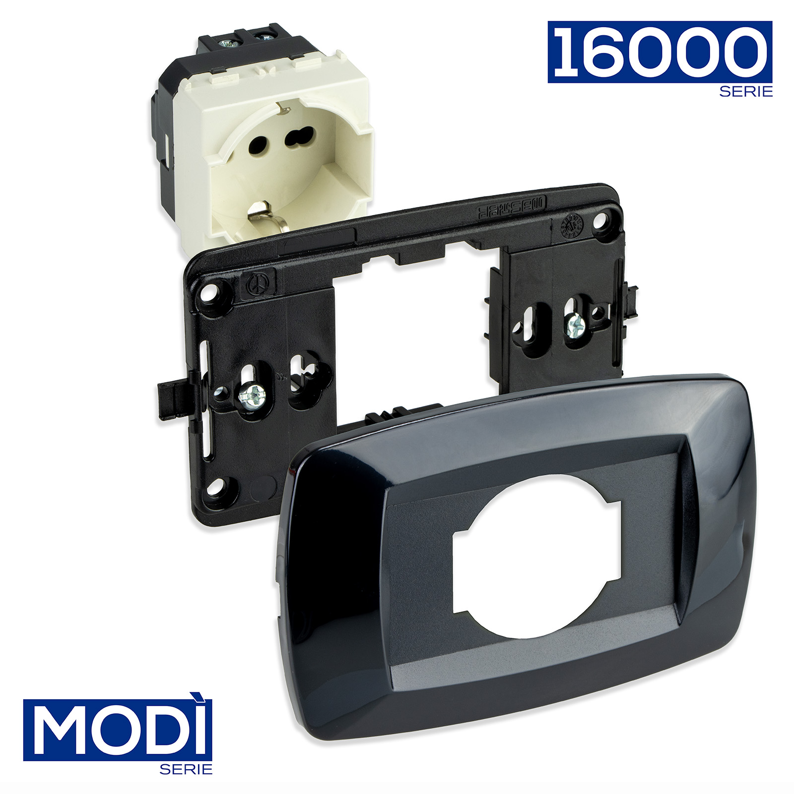 Placca MODÌ con foro centrale per presa universale P40, colore nero